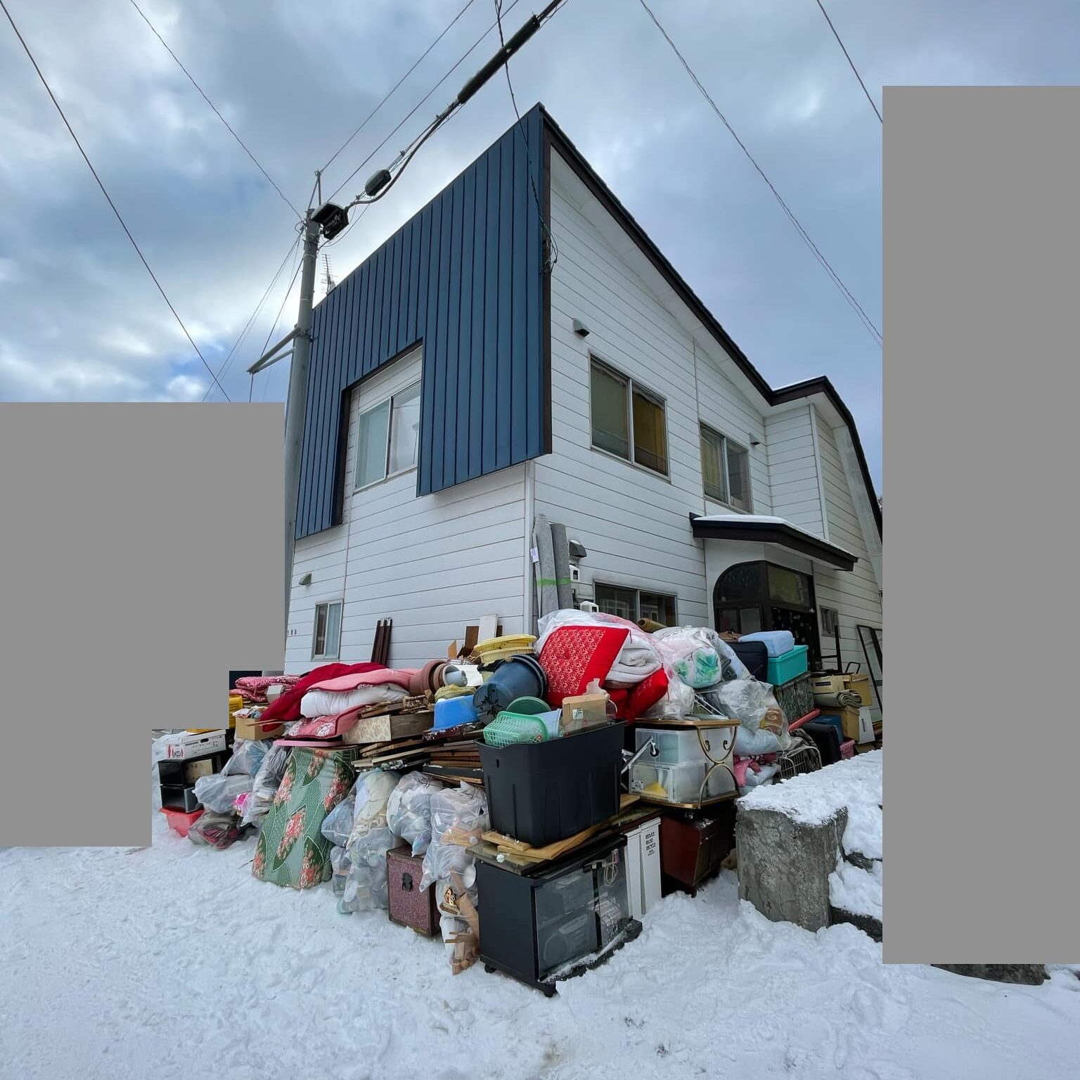 お住まいだった当時の、そのままの状況のご自宅は物が大変多い状況でしたので2日間4名で作業にあたりました。私たちはすべての家財整理におけるごみの収集・運搬を、札幌市の法令に則り、札幌市環境事業公社に委託しています。その費用がごみの体積で決まるので、大型の家具はできる限り解体をして体積を減らし、お客様の費用を軽減できるよう努めました。